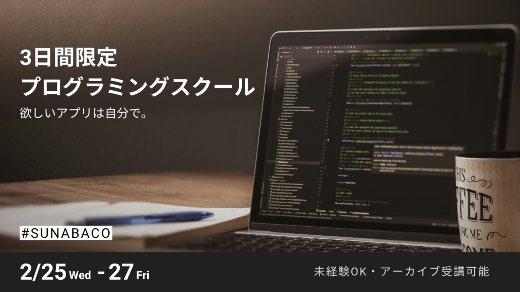 AIを使いながら、作って、試す3日間! 初めてのSUNABACOなら無料で参加できます。 プログラミングは、難しい知識を覚えることよりも、「作りたいものを形にできる」ことがいちばんの面白さ。 この講座では、正解…