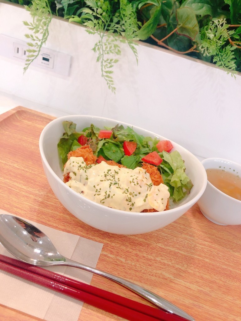 『かきフライ丼』 副菜とスープ付き (税込み¥750) オリーブ卵を使った自家製のタルタルソースを添えております ◎11:00~14:00 数量限定 ◎対象ドリンクを同時にご注文で合計金額から-¥100…